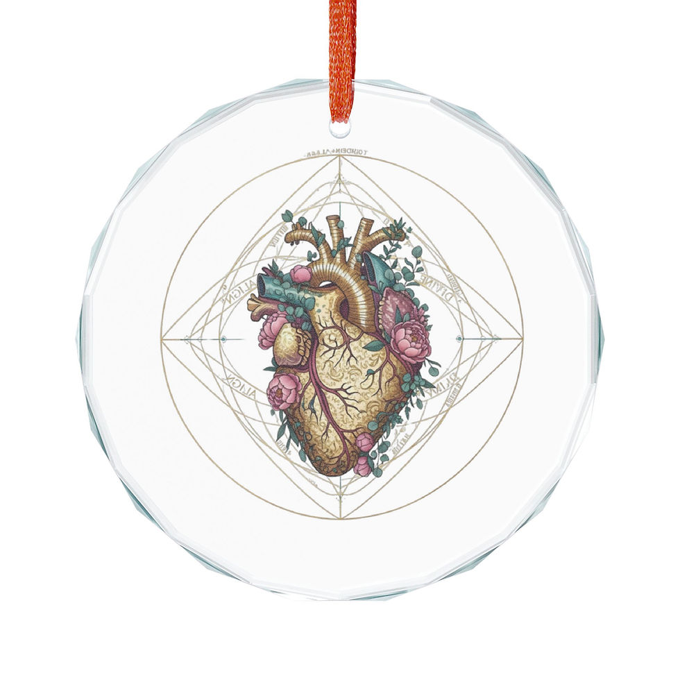 Anatomical Heart with Roses Glass Ornament Floral Medical Illustration Ornament